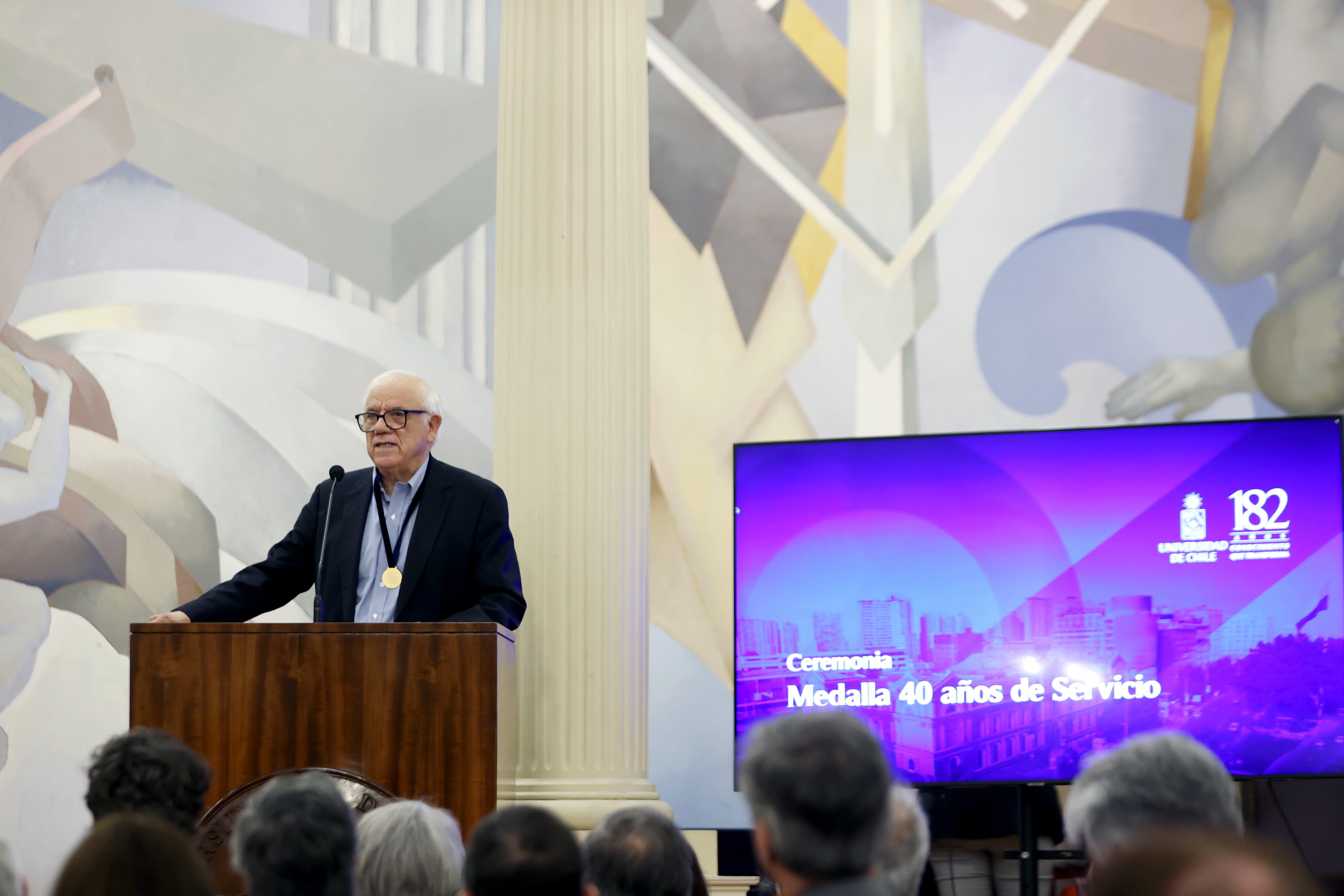 En una emotiva ceremonia encabezada por la Rectora Rosa Devés, la Prorrectora Alejandra Mizala y el vicerrector de Asuntos Económicos y Gestión Institucional, Sergio Olavarrieta, la Universidad de Chile celebró a quienes han dedicado cuatro décadas de sus vidas al servicio de la institución. El evento, realizado en el Salón de Honor de Casa Central, destacó las historias, compromisos y contribuciones de las y los homenajeados. Este encuentro formó parte de la conmemoración de los 182 años de la Casa de Bello, reafirmando su legado como universidad pública al servicio del país.
