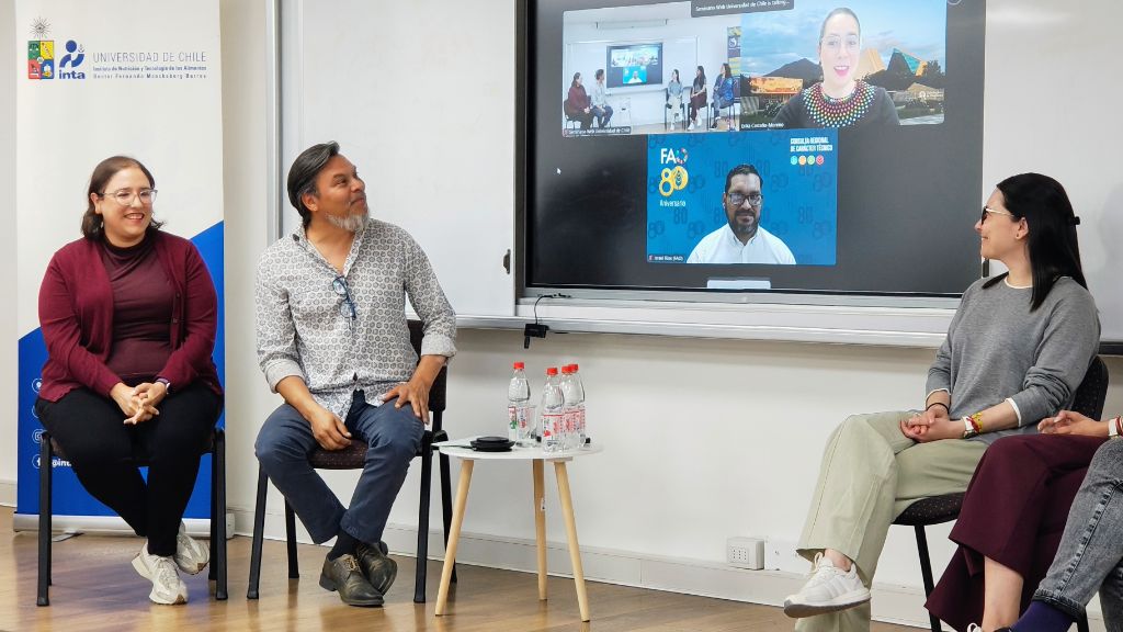 La actividad fue inaugurada por el director del instituto, Prof. Francisco Pérez Bravo, y se centró en experiencias de colaboración internacional en investigación, internacionalización en postgrado e interesantes testimonios de egresados y estudiantes que han desarrollado trayectorias profesionales fuera de Chile, o que han viajado desde sus países de origen para estudiar en el INTA, evidenciando cómo la internacionalización fortalece tanto la formación académica como la producción científica de la institución.