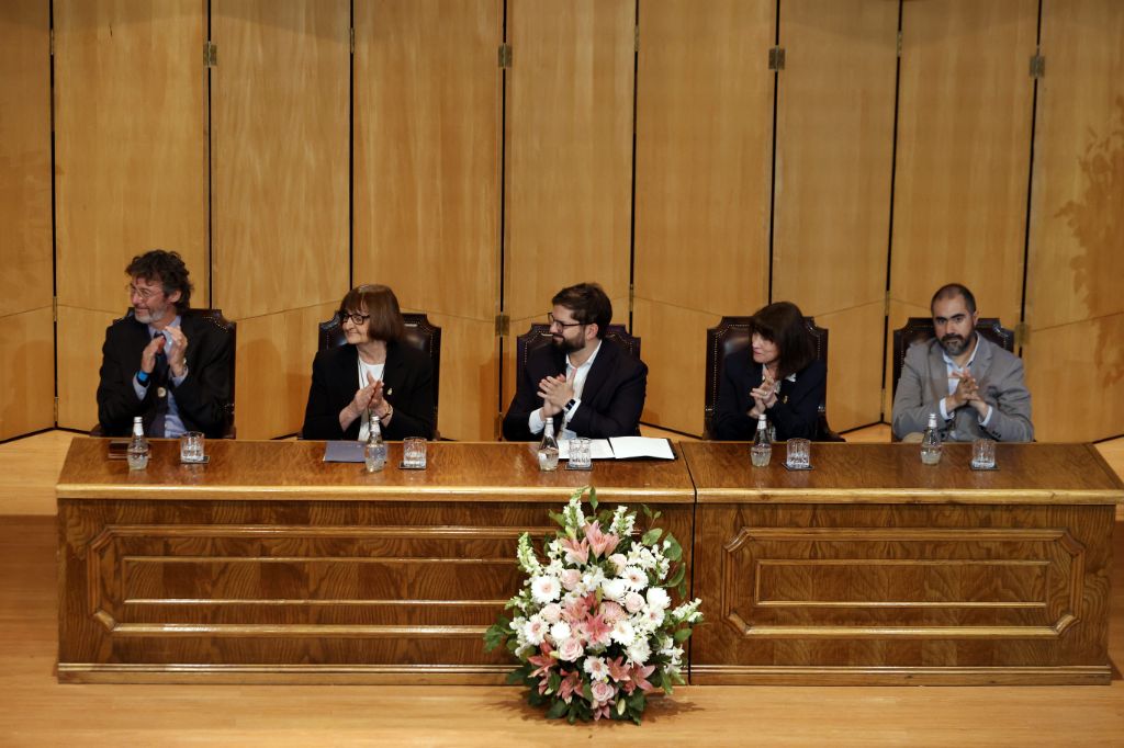 Finalizando sus palabras, el presidente señaló: “Estar en la universidad y en particular estar en la Universidad de Chile es un privilegio que tenemos que saber también responder, que tenemos que saber también agradecer trabajando por nuestra comunidad y por el bien común”.
