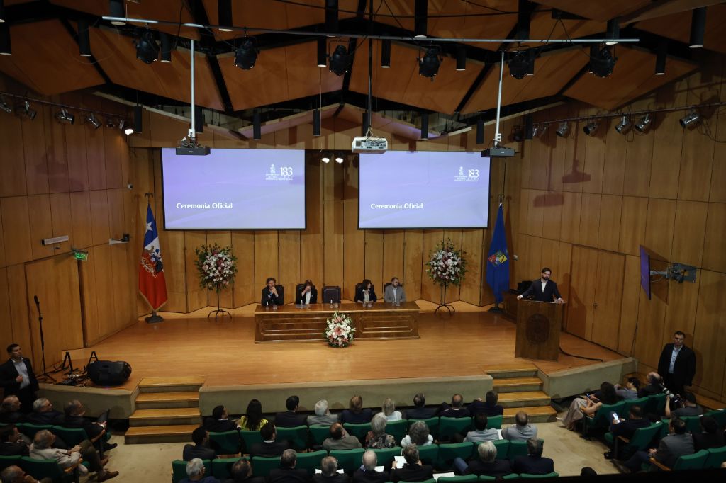Con un extracto del poema “A la nave” de Andrés Bello, el Presidente Gabriel Boric inició sus palabras como parte de la Ceremonia Oficial de Aniversario 183 de la Universidad de Chile, institución de la cual es patrono por ley, además de egresado de sus aulas.